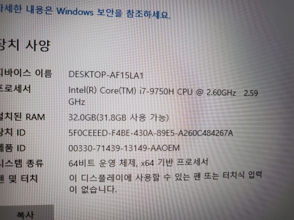 cpu 인텔 i7-9750h