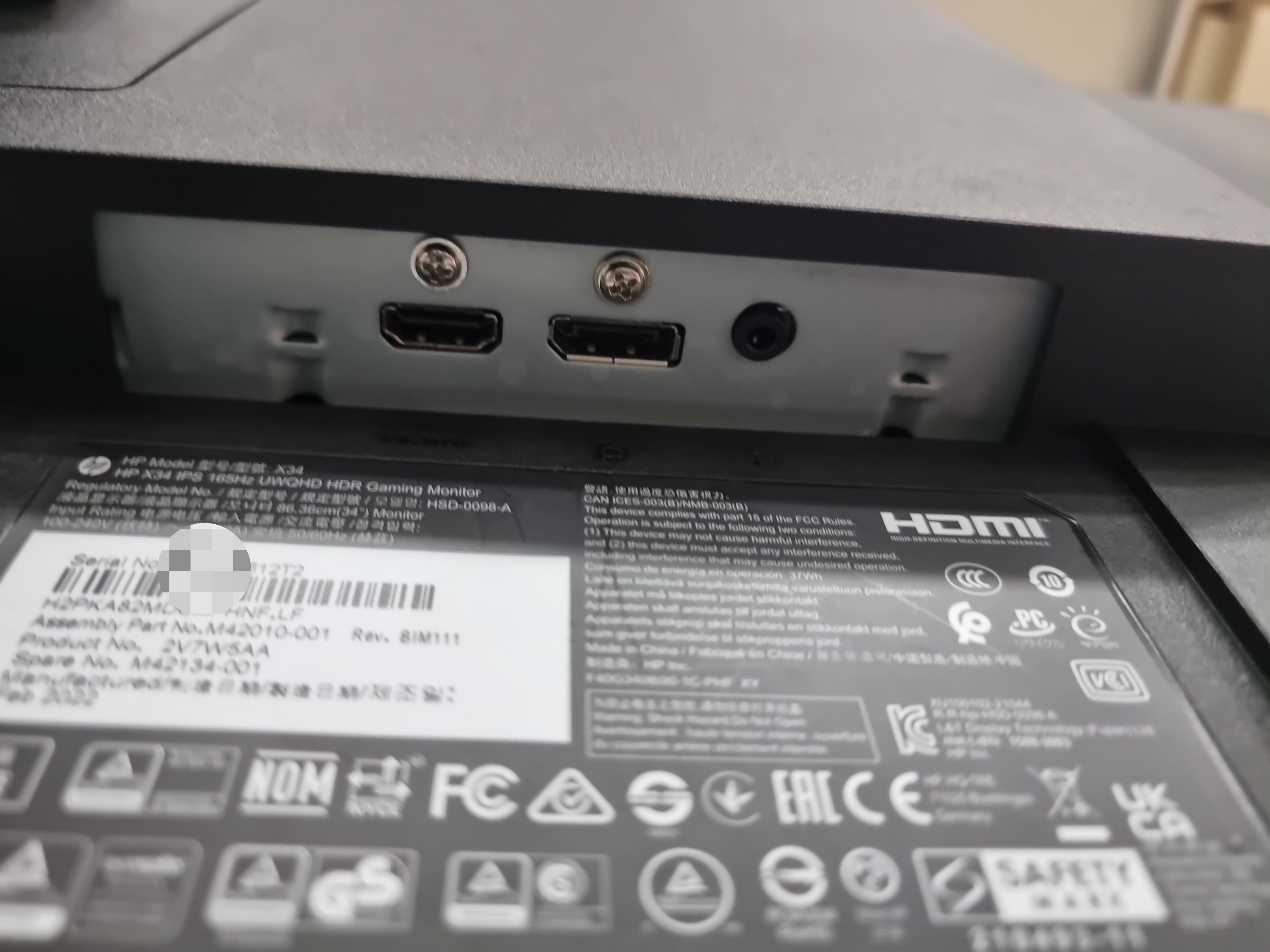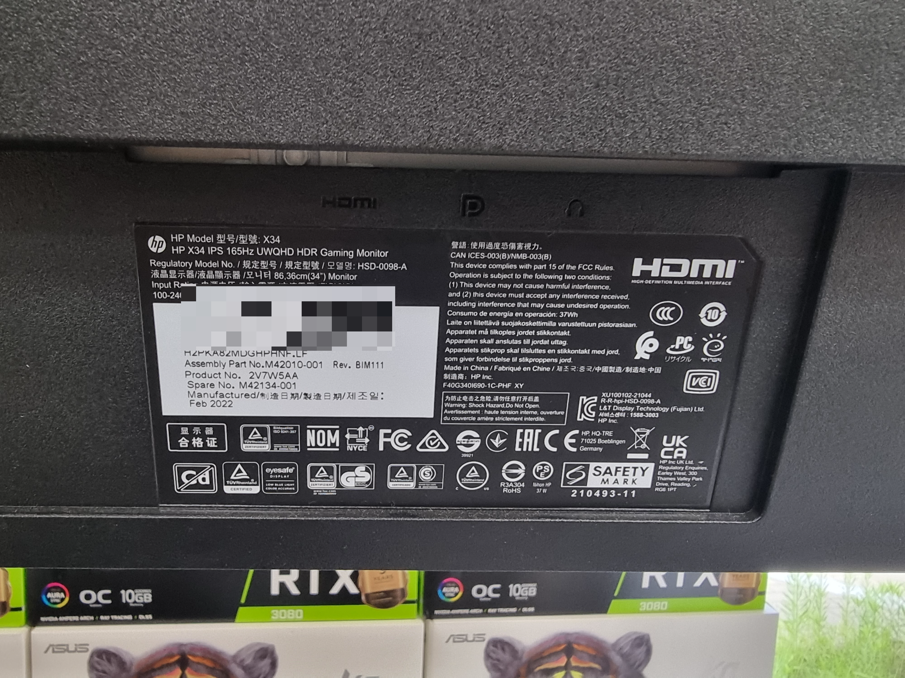 모니터 제조년월은 22년 2월로